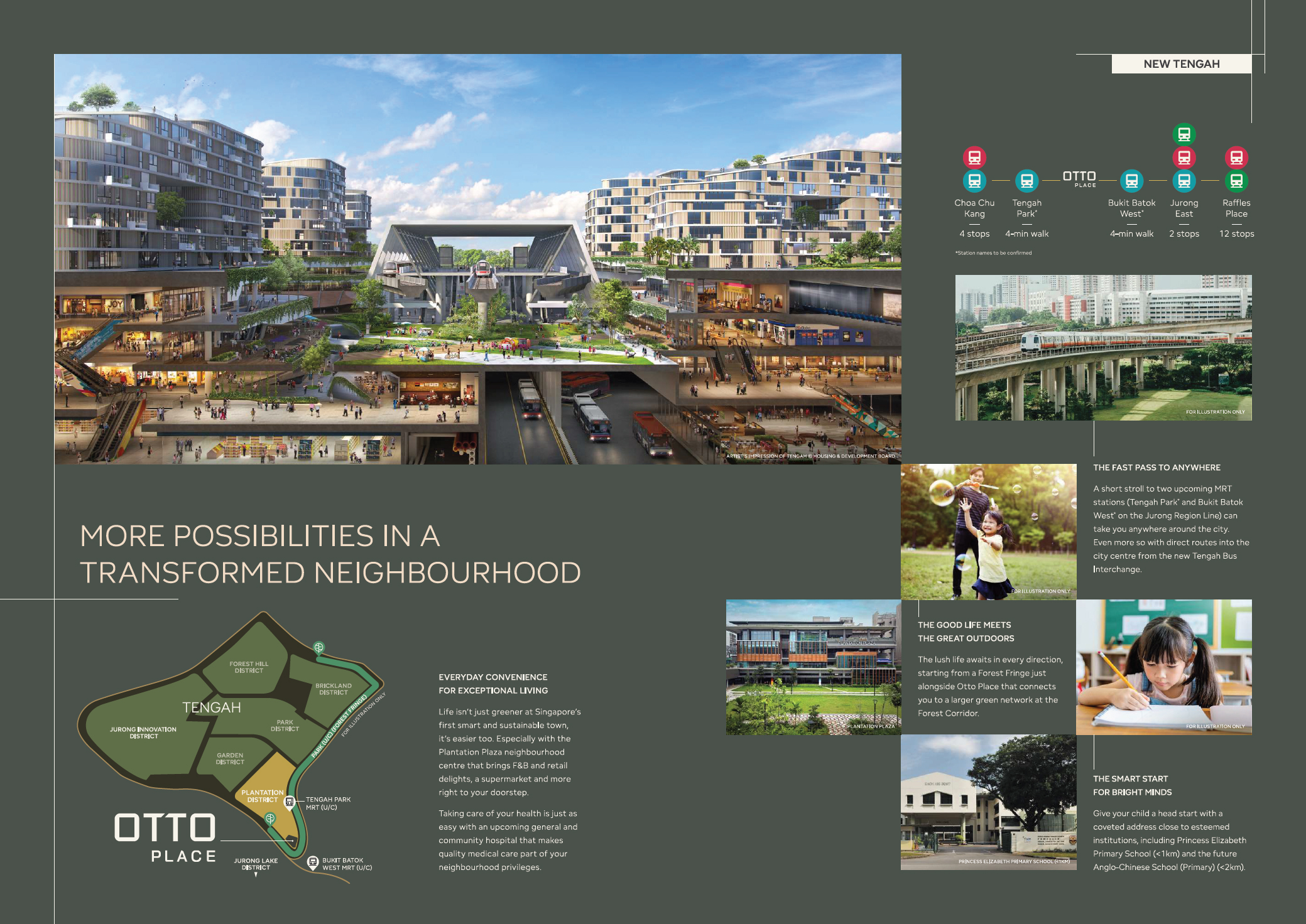 A key factor for families choosing their homes is to be closed to good schools. Otto Place EC offers convenient access to a variety of preschools and early learning centres that provide quality education in a nurturing environment. Parents can anticipate the opening of ACS (Primary) and new primary schools in the future. Existing good schools / educational institutions nearby include Jurong Primary School, Princess Elizabeth Primary School, Dazhong Primary School, St. Anthony’s Primary School, Dunearn Secondary School, Bukit Batok Secondary School, Bukit View Secondary School, Dulwich College and Millennia Institute.